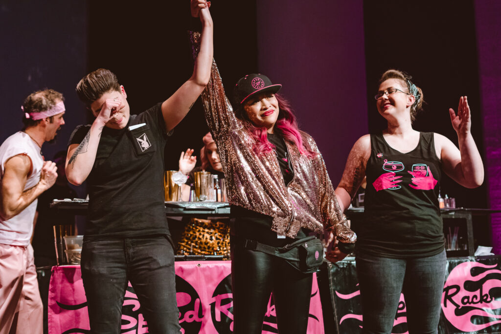 Speed Rack is a friendly competition set in front of a cheering crowd with energetic music, dancing and light-hearted trash talk. It is designed to highlight up-and-coming self-identifying females in the cocktail industry and give back to those impacted by breast cancer.